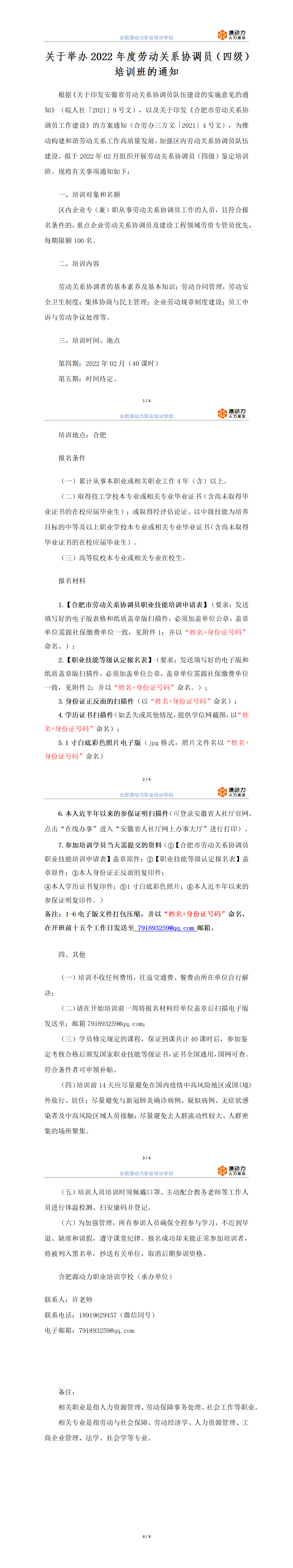 關(guān)于舉辦 2022年度勞動(dòng)關(guān)系協(xié)調(diào)員(四級(jí)) 培訓(xùn)班的通知