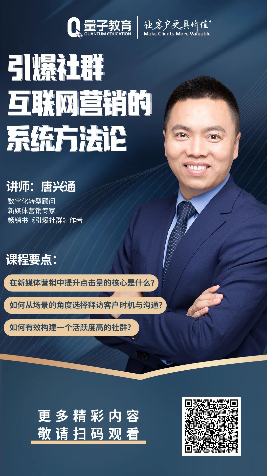 本周為您推薦的是數(shù)字化轉(zhuǎn)型顧問&新媒體營(yíng)銷專家唐興通老師的《引爆社群:互聯(lián)網(wǎng)營(yíng)銷的系統(tǒng)方法論》!